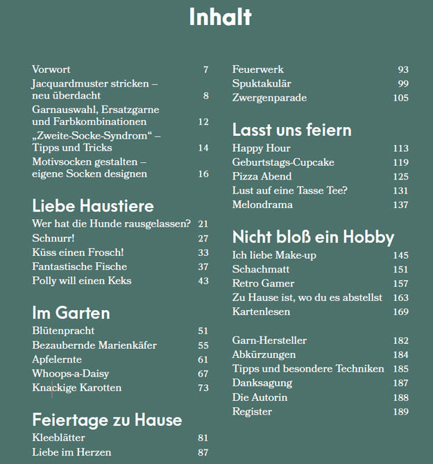 Charlotte Stone zeigt Schritt für Schritt, wie 25 neue Motivsocken gestrickt werden. Ihre klaren Anleitungen und Tipps machen auch komplexere Muster wie Apple Picking, Who Let the Dogs Out? oder Kiss a Frog zu einem Vergnügen. Von verspielten Gnom-Designs bis hin zu köstlichen Pizza-Nacht-Motiven – hier ist für jeden Geschmack etwas dabei.